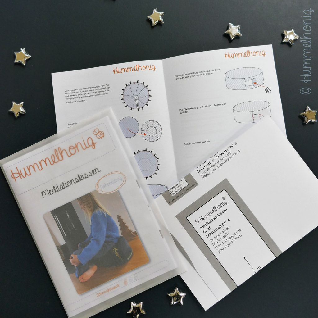 Das Meditationskissen gibt es mittlerweile nicht nur als Ebook sondern auch als Papierschnitt. Dieser enthält neben dem großformatigen Schnittbogen auch die komplette Anleitung in gedruckter, handlicher Form – perfekt um während dem Nähen nicht die ganze Zeit ins Handy schauen zu müssen! Verpackt ist der Papierschnitt in einem halbtransparenten Papierumschlag, zur weiteren Aufbewahrung von Anleitung und Schnittmuster.