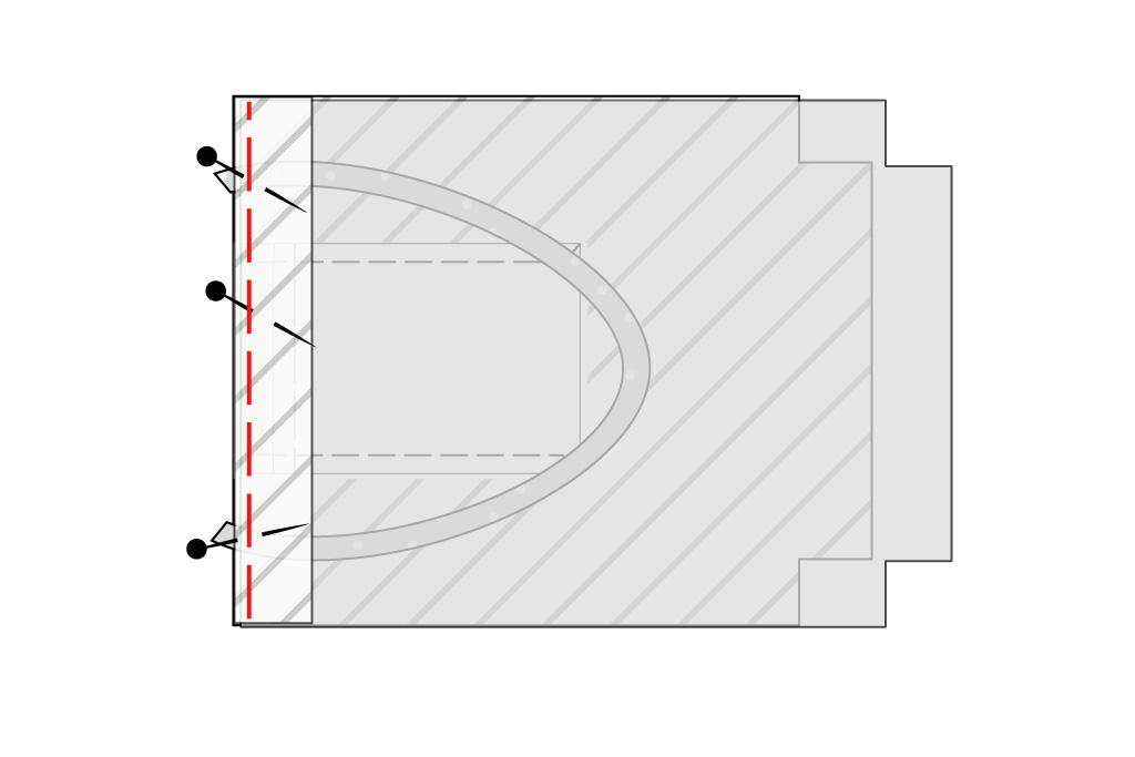 Die Innentasche rechts auf rechts auf ein Innenbeutelschnittteil stecken. Die Position ist auf dem Schnittteil Innenbeutel mit Knipsen markiert. Die gesäumte Öffnung der Innentasche weist dabei nach oben. Das Gurtband rechts auf rechts auf den Innenbeutel legen, die Gurtbandenden schauen etwas über die Inennbeutelkante. Innen- und Außenbeutel rechts auf rechts an der oberen Kante aufeinander legen.