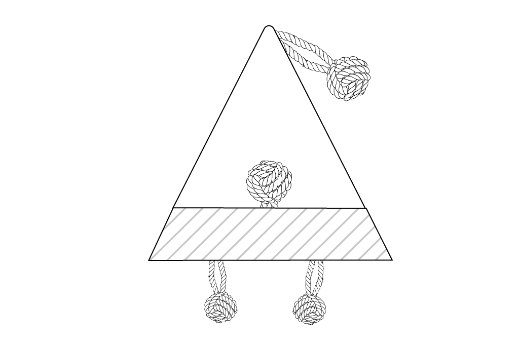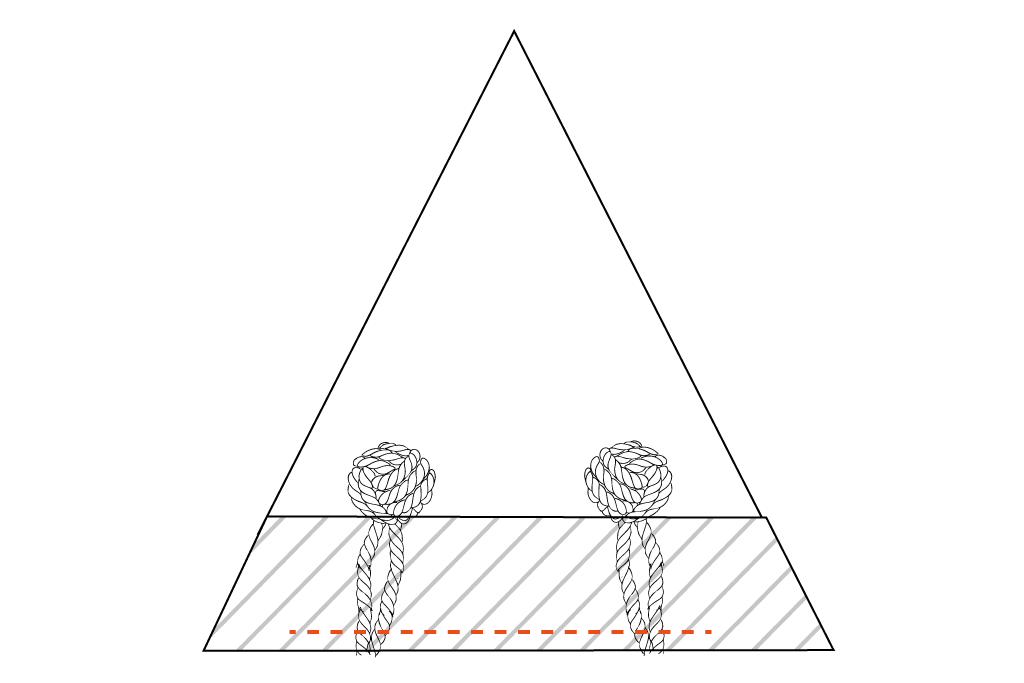 Füßeentweder Reste von den beiden Affenfäusten verknoten oder 2 weitere Affenfäuste (siehe oben)