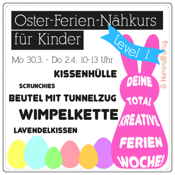 Der Nähkurs findet in der ersten Osterferienwoche (30.3.-2.4.26) von Montag bis Donnerstag im Hummelhonig Laden in der Rotebühlstr. 145, 70197 Stuttgart statt. Wir starten jeden Tag um 10:00 und nähen bis ca 13:00 Uhr.